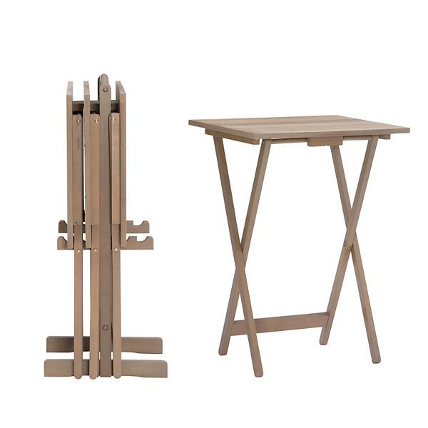$519.99 ($104.00 per item) free shipping. Grunberg 5 piece tray table set (set of 5) by red barrel studio®. Matching solid wood storage stands for organization. Use mainstay tray table to instantly creates a desk, small kitchen table and work surface, meals by the television. The gray tv tray table set has a distinctive look with its sturdy wood construction and planked top. Ships from and sold by imagos. Set of 4 folding tv tables and matching storage stand for easy storage. Atlantic park place tv tray table in black/white (set of 2) $49.99. Bee & willow™ home metal folding tray table in black. This natural wood table set is available in various colors. This set includes foldable tv trays and one storage stand. The tv tray can be used for multiple activities like reading, eating and writing. Choose items to buy together.